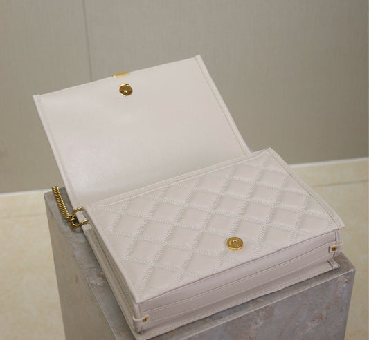 BECKY 26 IN WHITE QUILTED LAMBSKIN GOLD HARDWARE
