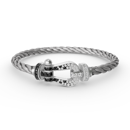[Crown Jewelry]FORCE LARGE HORSESHOE BLACK WHITE DIAMOND BRACELET SILVER