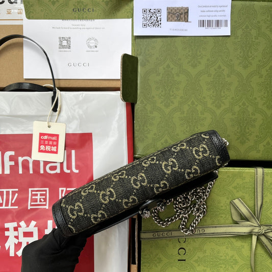 GUCCI 25S DIONYSUS WALLET ON CHAIN 20 IN BLACK GLOSSY CALFSKIN
